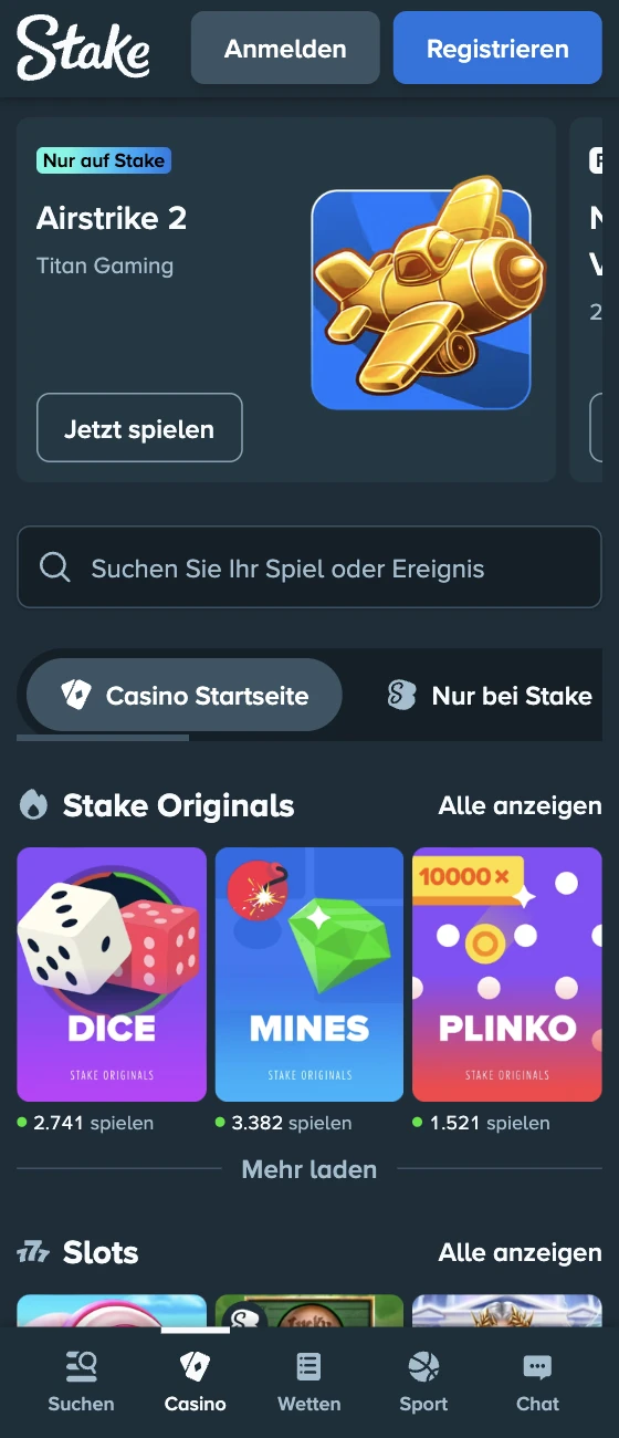 Wenn Sie iOS nicht nutzen oder Browser-Play bevorzugen, funktioniert unsere mobile Seite auf modernen Smartphones und Tablets sehr gut. Öffnen Sie Ihren Browser, gehen Sie auf unsere offizielle Website, und das Layout passt sich automatisch Ihrer Bildschirmgröße an. Die mobile Seite bietet Zugriff auf Spiele, Kassenfunktionen, Verifizierung, Aktionen und Live-Support – so ist Stake auch ohne Installation bequem nutzbar. Für viele Nutzer ist das der schnellste Weg, um unterwegs Stake Casino-Services zu erreichen.